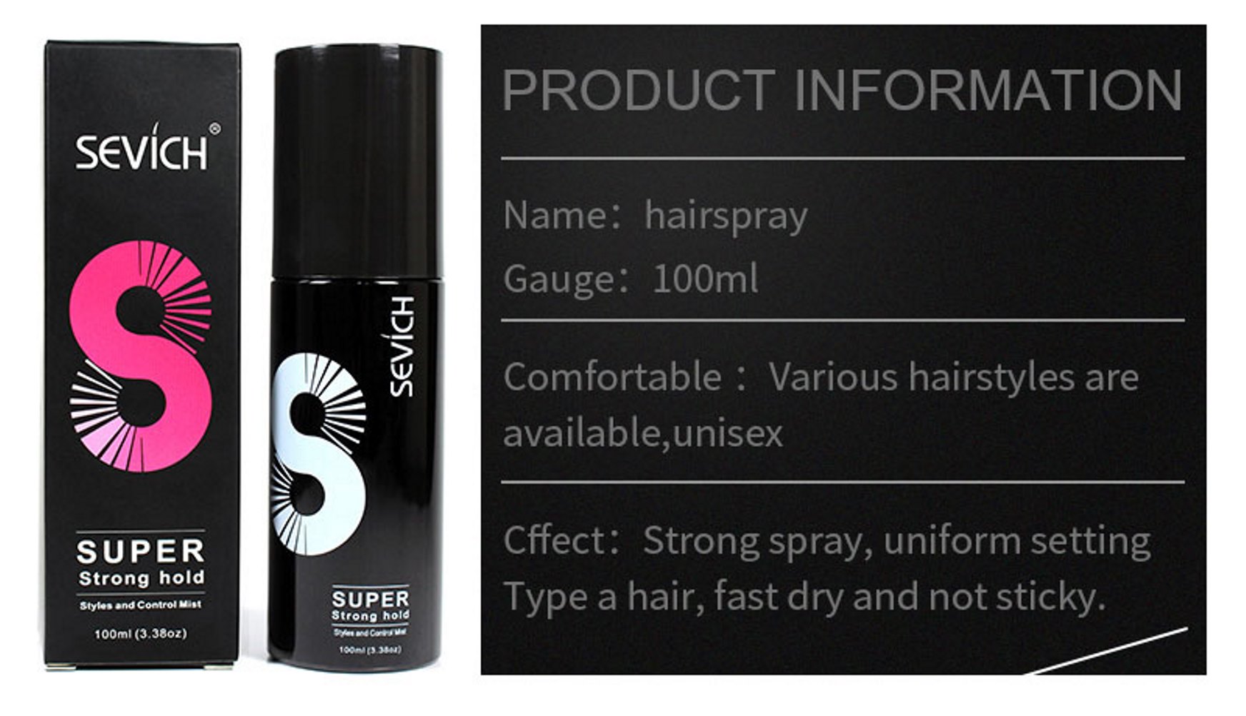Sevich Fixier Spray ist der Garant dafür, dass die Frisur nach der Haarauffüllung auch bei starken Belastungen wie Wind, Regen, Schwitzen und beim Sport in Form gehalten wird.